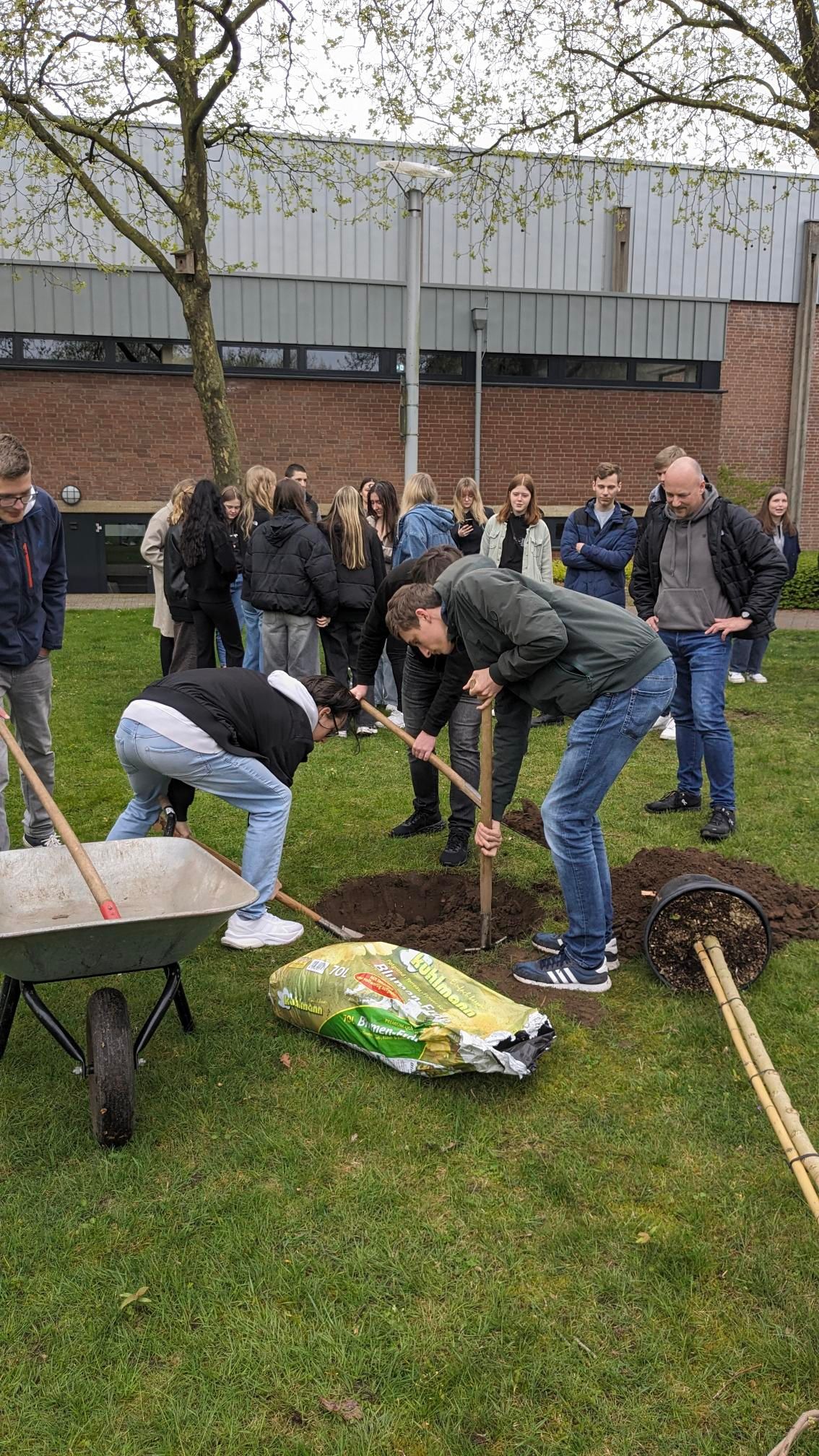 Gemeinsam mit den verschiedenen Klassen- und Fachlehrern und unter fachkundiger Anleitung von Uwe Sobbe aus dem Bereich Agrarwirtschaft wurde der Baum feierlich seiner Bestimmung übergeben. Auch in diesem Jahr wird damit eine Tradition fortgeführt, die auch in einigen Jahren noch an die Abiturjahrgang 2024 erinnert.