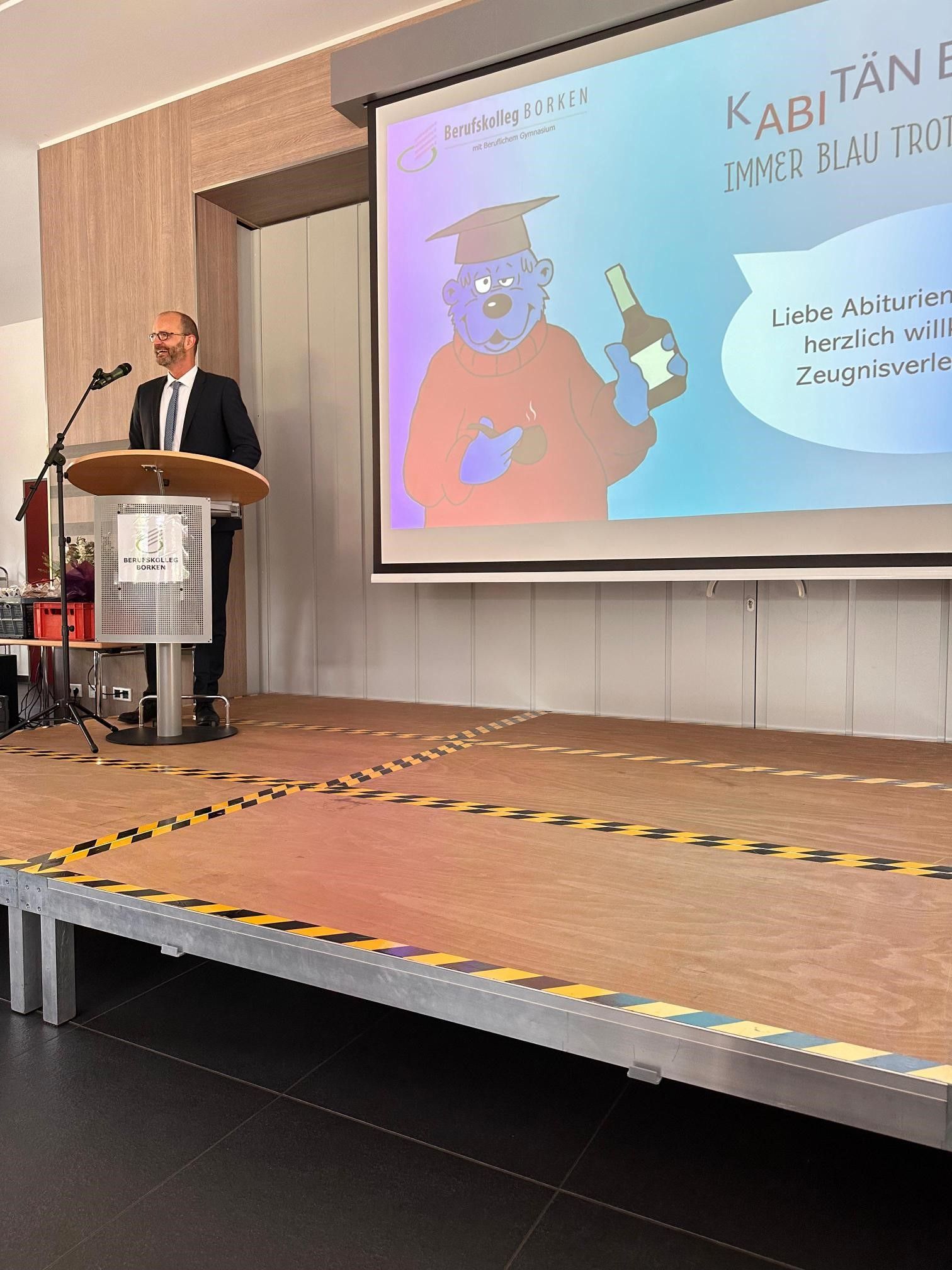 Zum „höchsten in Deutschland zu erwerbendem Bildungsabschluss“ gratulierte den Schülerinnen und Schülern sowie ihren Eltern Schulleiter Ansgar Plaßmann. In seiner Rede betonte er die Wichtigkeit, auf dem neuen Lebensweg die eigenen Stärken und Schwächen zu erkennen und diese Erkenntnisse so zu nutzen, um Zufriedenheit im eigenen Leben zu erlangen.