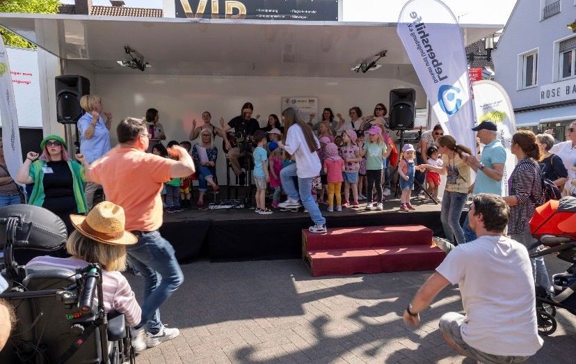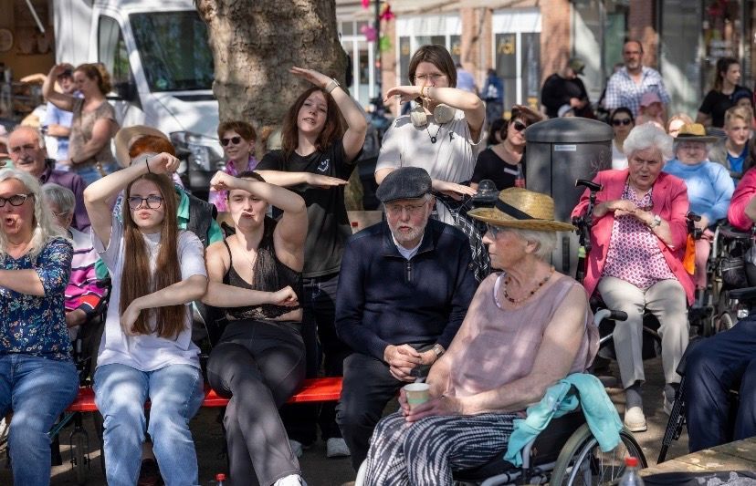 Sie holten Menschen aus den Altenheimen des Josefzentrums und Marien Senioren- und Pflegenzentrums ab, um mit ihnen gemeinsam auf dem Marktplatz zu singen und zu tanzen.