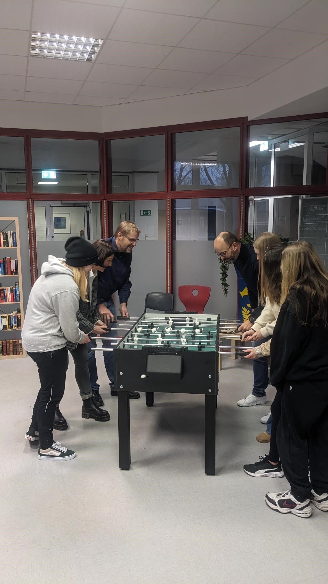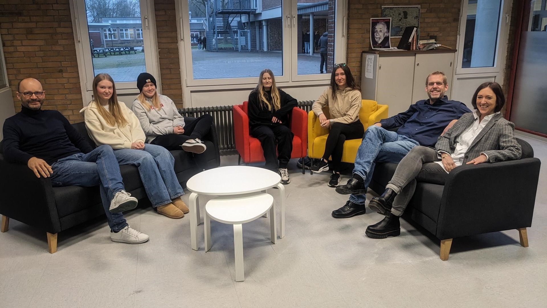 Ab sofort steht den Schülerinnen und Schülern unserer beruflichen Gymnasien der neue Oberstufenraum (Raum 3002) im Erdgeschoss von Gebäude 3 als Aufenthaltsraum zur Verfügung. Der Raum ist täglich bis 14.30 Uhr geöffnet und darf in Freistunden gerne genutzt werden. Gemütliche Sofas und Sessel laden zum Entspannen ein, ein Kicker sorgt für Spiel und Spaß und vielleicht findet ihr im prallgefüllten Bücherregal ja auch noch den passenden Roman, um mal abzuschalten?!